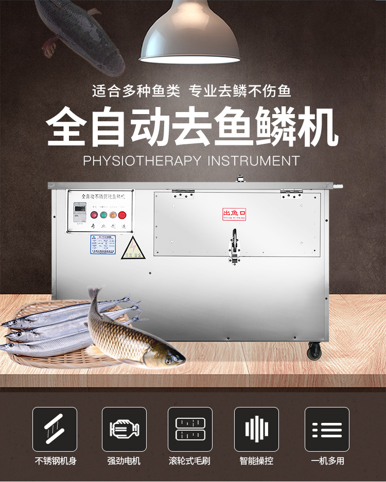 自動魚鱗機廣泛應用于魚類銷售市場、飯店、魚類加工廠等等,本產品不會對魚頭、魚尾、魚鰭造成損傷。該機器利用旋轉效應,使魚在運動中去鱗,去鱗干凈,對魚的加工去鱗屬國內外首創,主要指標達到國際先進水平。